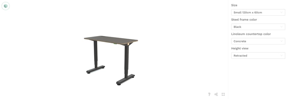 Here, we break down the different types of visuals a 3D product customizer can achieve with the P1 working desk as an example: