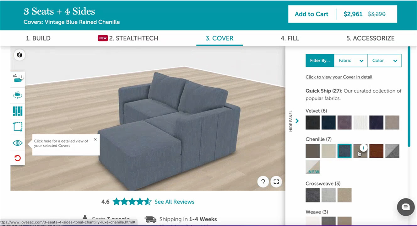 Lovesac’s guided sectional configurator for its famous “Sactionals” has completely revolutionized the way they sell their marquee product.